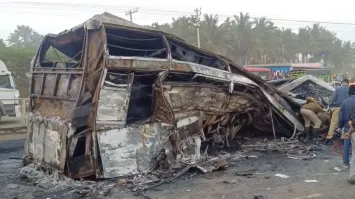 ଚିତ୍ରାଦୁର୍ଗ ଜିଲ୍ଲାରେ ଏକ ଭୟଙ୍କର ସଡ଼କ ଦୁର୍ଘଟଣା ଘଟିଛି। ଏକ ଘରୋଇ ସ୍ଲିପର ବସ୍ ଏକ ଟ୍ରକ୍ ସହିତ ଧକ୍କା ହେବା ଦ୍ୱାରା ବସ୍‌ଟି ଜଳି ଯାଇଛି । ବସ୍‌ରେ ନିଆଁ ଲାଗି ଯାଇ ୧୦ ଜଣଙ୍କର ମୃତ୍ୟୁ ହୋଇଛି। ବସର ଇନ୍ଧନ ଟାଙ୍କିରେ ମାଡ ହୋଇ ନିଆଁ ଲାଗିଯାଇଥିବା ସନ୍ଦେହ କରାଯାଉଛି । ବସରେ ଥିବା କିଛି ଯାତ୍ରୀ କୌଣସି ମତେ ବାହାରି ଆସିଥିବା ବେଳେ ୯ ଜଣ ଘଟଣାସ୍ଥଳରେ ଜୀବନ୍ତଦଗ୍ଧ ହୋଇଥିବା ବେଳେ ଓ ଅନ୍ୟ ଜଣଙ୍କୁ ମେଡିକାଲରେ ମୃତ ଘୋଷଣା କରାଯାଇଛି । ମୃତକଙ୍କ ମଧ୍ୟରେ ଅଛନ୍ତି ଜଣେ ଟ୍ରକ ଡ୍ରାଇଭର । ବସରେ ସମୁଦାୟ ୩୨ ଜଣ ଯାତ୍ରୀ ଥିଲେ ବୋଲି ସୂଚନା ରହିଛି ।