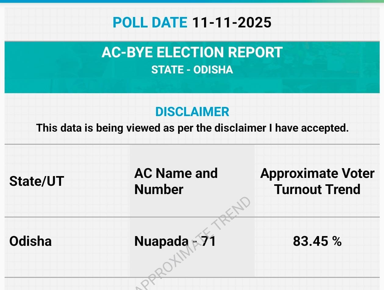 ଦେଶରେ ୬ଟି ରାଜ୍ୟରେ ହେଉଥିବା ଉପନିର୍ବାଚନ ଶେଷ ହୋଇଛି । ଇଭିଏମରେ ବନ୍ଦ ହୋଇଯାଇଛି ପ୍ରାର୍ଥୀଙ୍କ ଭାଗ୍ୟ । ଏହାରି ମଧ୍ୟରେ ନୂଆପଡ଼ା ଉପନିର୍ବାଚନରେ ରେକର୍ଡ ହୋଇଛି ୮୩.୪୫% ମତଦାନ । ଏ ନେଇ ECIଙ୍କ ପକ୍ଷରୁ ସୂଚନା ଜାରି ହୋଇଛି । ନୂଆପଡ଼ାରେ ଗତ ୨୦୨୪ ସାଧାରଣ ନିର୍ବାଚନ ଅପେକ୍ଷା ମତଦାନ ବୃଦ୍ଧି ପାଇଛି । ଗତ ନିର୍ବାଚନରେ ୭୫.୪୯ ପ୍ରତିଶତ ମତଦାନ ହୋଇଥିବା ବେଳେ ଚଳିତ ବର୍ଷ ୮୩.୪୫% ମତଦାନ ରେକର୍ଡ କରାଯାଇଛି । ସୂଚନା ଯୋଗ୍ୟ; ଗତକାଲି ସକାଳ ୭ଟାରୁ ନୂଆପଡ଼ାରେ ମତଦାନ ଆରମ୍ଭ ହୋଇଥିଲା । କେବଳ ସୁନାବେଡ଼ା ଅଭୟାରଣ୍ୟ ଅଞ୍ଚଳରେ ଅପରାହ୍ନ ୪ଟାରେ ମତଦାନ ହୋଇଥିବାବେଳେ ଅନ୍ୟ ସମସ୍ତ ସ୍ଥାନରେ ରାତି ୭ଟା ଯାଏ ମତଦାନ ହୋଇଥିଲା । ମୋଟ ୩୫୮ଟି ବୁଥରେ ଭୋଟିଂ ହୋଇଥିଲା । କିଛି ସ୍ଥାନରେ ମକ୍ ପୋଲିଂ ବେଳେ ଇଭିଏମରେ ତ୍ରୁଟି ଦେଖାଯାଇଥିଲା, ଯାହାକୁ ତୁରନ୍ତ ପରିବର୍ତ୍ତନ କରାଯାଇଥିଲା । ସେହିପରି ଆଉ ଗୋଟିଏ ବୁଥରେ ମତଦାନ ମଝିରେ ଇଭିଏମରେ ତ୍ରୁଟି ପରିଲକ୍ଷିତ ହୋଇଥିଲା । ଏହା ପରେ ଖରିଆର ରୋଡରେ ଥିବା ଷ୍ଟ୍ରଙ୍ଗ ରୁମରେ ତ୍ରିସ୍ତରୀୟ ସୁରକ୍ଷା ବଳୟ ମଧ୍ୟରେ ଇଭିଏମ୍ ରଖାଯାଇଛି । ନୂଆପଡ଼ା ଓ କୋମନା ବ୍ଲକ୍ର କିଛି ବୁଥ୍ରେ ରାତି ୭ଟା ପର୍ଯ୍ୟନ୍ତ ମତଦାନ ଚାଲିଥିଲା। ସେହିପରି ସୁନାବେଡ଼ା ଅଭୟାରଣ୍ୟ ସଂଲଗ୍ନ ମାଓପ୍ରବଣ ୮ଟି ବୁଥ୍ରେ ସନ୍ଧ୍ୟା ୪ଟା ପର୍ଯ୍ୟନ୍ତ ମତଦାନ ହୋଇଥିଲା। ପୋଲିଂ ଅଧିକାରୀମାନେ ଇଭିଏମ୍ ଧରି ସୁରକ୍ଷିତ ଭାବେ ବାୟୁସେନାର ସ୍ବତନ୍ତ୍ର ବିମାନରେ ଫେରିଥିଲେ। Post navigation T-20: ଭାରତ-ଦକ୍ଷିଣ ଆଫ୍ରିକା ଆନ୍ତର୍ଜାତୀକ ଟି-୨୦ ମ୍ୟାଚ୍ ପ୍ରସ୍ତୁତି ସମୀକ୍ଷା ବୈଠକ କଲେ ମୁଖ୍ୟମନ୍ତ୍ରୀ ମୋହନ ମାଝୀ SI Scam: ଏସଆଇ ପରୀକ୍ଷା କେଳେଙ୍କାରୀ ମାମଲାରେ ଅଭିଯୁକ୍ତ ଶଙ୍କର ପୃଷ୍ଟିର ଘନିଷ୍ଠ ସହଯୋଗୀ ଗିରଫ