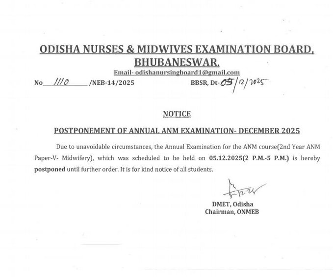 ସ୍ଥଗିତ ହେଲା ଏଏନଏମର ଦ୍ୱିତୀୟ ବର୍ଷ ଆଜିର ପରୀକ୍ଷା । ପଞ୍ଚମ ପେପର- ମିଡ ୱାଇଫେରୀ ପରୀକ୍ଷା ସ୍ଥଗିତ । ପରବର୍ତ୍ତୀ ନିର୍ଦ୍ଦେଶନାମା ପର୍ଯ୍ୟନ୍ତ ସ୍ଥଗିତ ନିର୍ଦ୍ଦେଶ । ONMEB ପକ୍ଷରୁ ଜାରି ହେଲା ନିର୍ଦ୍ଦେଶନାମା । ଆଜି ପରୀକ୍ଷା ଆରମ୍ଭ ପୂର୍ବରୁ ପ୍ରଶ୍ନପତ୍ର ପ୍ରଘଟ ଅଭିଯୋଗ ହୋଇଥିଲା । ପରୀକ୍ଷାର ୩ଘଣ୍ଟା ପୂର୍ବରୁ ଏଏନଏମ ପ୍ରଶ୍ନପତ୍ର ଲିକ୍ ହୋଇଥିଲା । ଦ୍ୱିତୀୟ ବର୍ଷ ଛାତ୍ରଙ୍କ ପରୀକ୍ଷା ପୂର୍ବରୁ ପ୍ରଶ୍ନପତ୍ର ଲିକ୍ । ଦିନ ୨ଟାରେ ପରୀକ୍ଷା ଥିବା ବେଳେ ୧୧ଟା ବେଳେ ପ୍ରଶ୍ନପତ୍ର ଲିକ୍ ହୋଇଥିଲା । ଆଜି ମିଡ୍ ୱାଇଫେରି ବିଷୟରେ ହୋଇଥାନ୍ତା ପରୀକ୍ଷା । ଲିକ୍ ହୋଇଥିବା ପ୍ରଶ୍ନପତ୍ର, ଯାହା ମିଡ୍ ୱାଇଫାରୀ ବିଷୟର ବୋଲି କୁହାଯାଉଛି, ଏହାକୁ ସୋସିଆଲ ମିଡିଆ ପ୍ଲାଟଫର୍ମ ମାଧ୍ୟମରେ ସେୟାର କରାଯାଇଥିବା କୁହାଯାଉଛି, ଯାହା ପରୀକ୍ଷା ପ୍ରକ୍ରିୟାର ସ୍ୱଚ୍ଛତା ଏବଂ ସୁରକ୍ଷା ବିଷୟରେ ଚିନ୍ତା ସୃଷ୍ଟି କରିଛି। ମାଲକାନଗିରି ଏବଂ ବଲାଙ୍ଗିର ଜିଲ୍ଲାର ପ୍ରାର୍ଥୀ ଏବଂ ସୂତ୍ରଗୁଡ଼ିକରୁ ଲିକ୍ ସମ୍ପର୍କରେ ଅଭିଯୋଗ ଆସିଛି। Post navigation Primary Teachers Protest: ଆଜି ବିଧାନସଭା ଆଗରେ ଗର୍ଜିଲେ ହଜାର ହଜାର ପ୍ରାଥମିକ ଶିକ୍ଷକ Professor Posts Vacant: ବିଶ୍ଵବିଦ୍ୟାଳୟ ଖାଲି ପଡିଛି ୧୪୩୦ ଅଧ୍ୟାପକ ପଦବୀ: ଉଚ୍ଚଶିକ୍ଷା ମନ୍ତ୍ରୀ