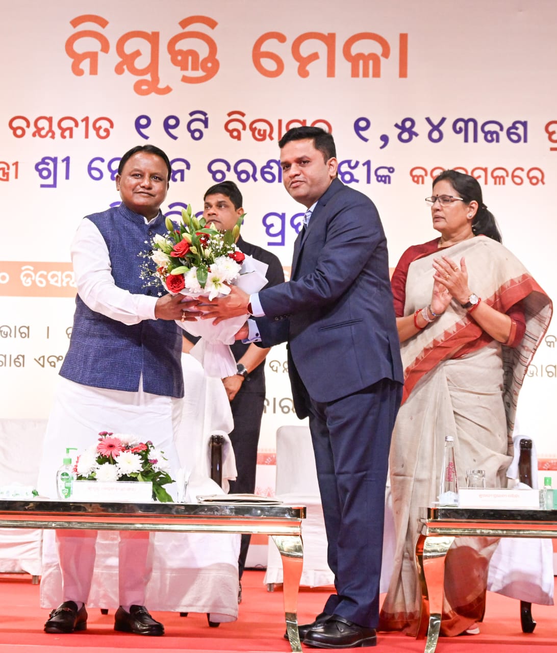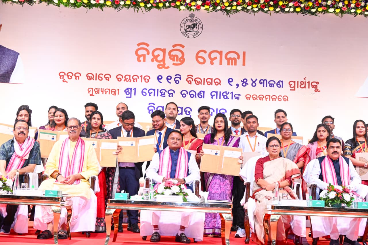 ଆଜି ୧୪ତମ ନିଯୁକ୍ତିମେଳା କାର୍ଯ୍ୟକ୍ରମ ଅବସରରେ ନବ ନିଯୁକ୍ତଙ୍କୁ ନିଯୁକ୍ତି ପତ୍ର ପ୍ରଦାନ କରିଛନ୍ତି ମୁଖ୍ୟମନ୍ତ୍ରୀ ମୋହନ ମାଝୀ। ଏହି ଅବସରରେ ମୁଖ୍ୟମନ୍ତ୍ରୀ କହିଛନ୍ତି ଆମର ଏକ ବିକଶିତ ରାଷ୍ଟ୍ର ଓ ବିକଶିତ ରାଜ୍ୟ ଗଠନର ସଂକଳ୍ପକୁ ସାକାର କରିବାରେ ଏହି ନିଯୁକ୍ତି ମେଳାର ଭୂମିକା ଗୁରୁତ୍ୱପୂର୍ଣ୍ଣ । ସେଥିପାଇଁ ଆମ ସରକାର ଯୁବଶକ୍ତିଙ୍କୁ ନିଯୁକ୍ତି ଦେବା ଏବଂ ସେମାନଙ୍କ ପାଇଁ ନିଯୁକ୍ତି ସୁଯୋଗ ସୃଷ୍ଟି କରିବା ଅଭିଯାନ କ୍ରମାଗତ ଭାବେ ଜାରି ରଖିଛନ୍ତି । ସୂଚନାଯୋଗ୍ୟ ଯେ, ଆଜି ଭୁବନେଶ୍ୱର ରେଳ ଅଡିଟୋରିଅମ ଠାରେ ଆୟୋଜିତ ନିଯୁକ୍ତି ମେଳା ଅବସରରେ ୧୧ଟି ବିଭାଗର ସମୁଦାୟ ୧୫୪୩ଜଣଙ୍କୁ ନିଯୁକ୍ତି ପତ୍ର ପ୍ରଦାନ କରାଯାଇଛି। ଏଥିରେ ବିଦ୍ୟାଳୟ ଓ ଗଣଶିକ୍ଷା ବିଭାଗର ୬୮୧ଜଣ ଶାରୀରିକ କ୍ରୀଡା ପ୍ରଶିକ୍ଷକ, ୭୪ଜଣ ସ୍ନାତକୋତ୍ତର ଶିକ୍ଷକ, କୃଷି ଓ କୃଷି ସଶକ୍ତିକରଣ ବିଭାଗର ୭୭ ଜଣ ସହକାରୀ ମୃତ୍ତିକା ସଂରକ୍ଷଣ ଅଧିକାରୀ ଏବଂ ୩୧୫ ଜଣ ମୃତ୍ତିକା ସଂରକ୍ଷଣ ସମ୍ପ୍ରସାରଣ କର୍ମୀ, ରାଜସ୍ୱ ଓ ବିପର୍ଯ୍ୟୟ ପରିଚାଳନା ବିଭାଗର ୮୬ ଜଣ ଓଡିଶା ରାଜସ୍ୱ ସେବା ଅଧିକାରୀ ଏବଂ ୩୦ ଜଣ ଓଡିଶା ପ୍ରଶାସନିକ ସେବା ଅଧିକାରୀ, ଅର୍ଥ ବିଭାଗର ୬୫ ଜଣ ଓଡିଶା ଟିକସ ଓ ହିସାବ ସେବା ଅଧିକାରୀ ଏବଂ ୫୬ ଜଣ ଓଡିଶା ଅର୍ଥସେବା ଅଧିକାରୀ, ଶ୍ରମ ଓ କର୍ମଚାରୀ ରାଜ୍ୟ ବୀମା ବିଭାଗର ୧୦୫ ଜଣ ଓଡିଶା ଶ୍ରମସେବା ଅଧିକାରୀ ଏବଂ ଜଣେ ପରିସଂଖ୍ୟାନ ସହାୟକ, ସମବାୟ ବିଭାଗର ୧୨ ଜଣ ଓଡିଶା ସମବାୟ ସେବା ଅଧିକାରୀ ଏବଂ ୩ ଜଣ ଓଡିଶା ସମବାୟ ସମୀକ୍ଷା ସେବା ଅଧିକାରୀ, ପର୍ଯ୍ୟଟନ ବିଭାଗର ୧୮ ଜଣ ଓଡିଶା ପର୍ଯ୍ୟଟନ ସେବା ଅଧିକାରୀ, ଗୃହ ବିଭାଗର ୬ ଜଣ ଓଡିଶା ପୋଲିସ ସେବା ଅଧିକାରୀ, ଖାଦ୍ୟ ଯୋଗାଣ ଓ ଖାଉଟି କଲ୍ୟାଣ ବିଭାଗର ୫ ଜଣ ମାର୍କେଟ ଇଣ୍ଟେଲିଜେନ୍ସ ଅଫିସର, ଦକ୍ଷତା ବିକାଶ ଓ ବୈଷୟିକ ଶିକ୍ଷା ବିଭାଗରେ ଜଣେ ଓଡିଶା କର୍ମ ନିୟୋଜନ ସେବା ଅଧିକାରୀ ଏବଂ ଯୋଜନା ଓ ସଂଯୋଜନ ବିଭାଗର ୮ଜଣ ସହକାରୀ ନିର୍ଦ୍ଦେଶକ ଭାବେ ନିଯୁକ୍ତି ପତ୍ର ପାଇଛନ୍ତି। ନବନିଯୁକ୍ତଙ୍କୁ ଉଦ୍ବୋଧନ ଦେଇ ମୁଖ୍ୟମନ୍ତ୍ରୀ କହିଥିଲେ ଯେ, ଆପଣମାନେ କଠିନ ପରିଶ୍ରମ, ଘାତ ପ୍ରତିଘାତ ଦେଇ ଏଠାରେ ପହଞ୍ଚିଛନ୍ତି। ଏହି ନିଯୁକ୍ତି ପତ୍ର ହେଇଛି ଆପଣଙ୍କ ବିଶ୍ୱାସ ଓ ସଫଳତାର ପ୍ରତୀକ। ସେ ଆହୁରି କହିଥିଲେ ଆମ ସରକାର ଆସିବାର ମାତ୍ର ୧୮ ମାସ ହୋଇଛି। ଏହି ସ୍ୱଳ୍ପ ସମୟ ମଧ୍ୟରେ ସରକାରୀ ସ୍ତରରେ ଆମେ ୩୯,୪୫୯ ଜଣଙ୍କୁ ନିଯୁକ୍ତି ପ୍ରଦାନ କରିଛୁ। ସେ ପୁଣି କହିଥିଲେ ଆଜି ଠାରୁ ତୃଣମୂଳ ସ୍ତରରେ ଶାସନ ବ୍ୟବସ୍ଥାକୁ ପହଞ୍ଚାଇବା ଆପଣଙ୍କ କର୍ମମୟ ଜୀବନର ମୂଳ ଲକ୍ଷ୍ୟ ହେବ। ଏଥିପାଇଁ ଆପଣମାନେ ସ୍ୱଚ୍ଛତା, ଉତ୍ତରଦାୟିତ୍ୱବୋଧତା ଓ ଜନସାଧାରଣଙ୍କ ଅଭିଯୋଗର ତ୍ୱରିତ ସମାଧାନ ଉପରେ ସବୁବେଳେ ଗୁରୁତ୍ୱ ଦେବେ। ନିଜେ ଦୁର୍ନୀତିମୁକ୍ତ ରହିବା ସହିତ ବ୍ୟବସ୍ଥାକୁ ଦୁର୍ନୀତିମୁକ୍ତ କରିବା ପାଇଁ ସବୁବେଳେ ପ୍ରତିବଦ୍ଧ ରହି ରାଜ୍ୟବାସୀଙ୍କୁ ଉତ୍ତମ ସେବା ପ୍ରଦାନ କରିବେ। ଜନସାଧାରଣଙ୍କ ପ୍ରତି ଆପଣଙ୍କ କର୍ତ୍ତବ୍ୟ ଓ ଦାୟିତ୍ୱକୁ କେବେହେଲେ ଭୁଲିବେ ନାହିଁ। ନିଷ୍ଠା ଓ ସହାନଭୂତି ମନୋଭାବ ନେଇ ଜନସେବା ଜାରି ରଖିବେ। ଏହି ଅବସରରେ ମୁଖ୍ୟମନ୍ତ୍ରୀ ପ୍ରତ୍ୟେକ ଜିଲ୍ଲାରୁ ଜଣେ ଲେଖାଏଁ ନବନିଯୁକ୍ତଙ୍କୁ ନିଯୁକ୍ତି ପତ୍ର ପ୍ରଦାନ କରି