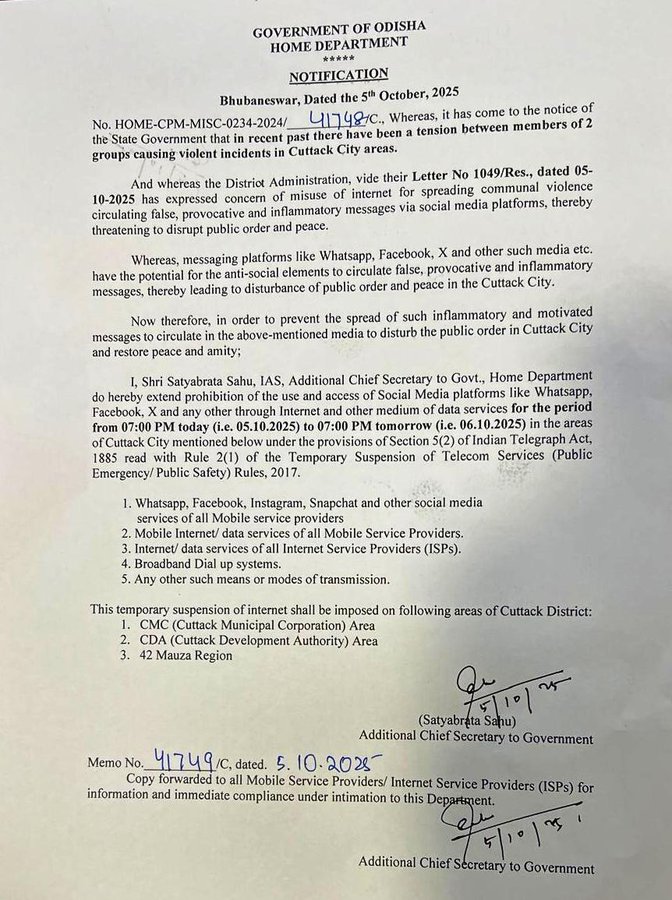 କଟକ ସହରରେ ସୋସିଆଲ୍ ମିଡିଆ ଉପରେ ଲାଗିଲା କଟକଣା । ଆସନ୍ତା ୨୪ ଘଣ୍ଟା ପାଇଁ ବନ୍ଦ ରହିବ ଇଣ୍ଟରନେଟ ସେବା। ଆଜି ସଂଧ୍ୟା ୭ଟାରୁ ଆସନ୍ତାକାଲି ସଂଧ୍ୟା ୭ଟା ପର୍ଯ୍ୟନ୍ତ ଲାଗିଲା କଟକଣା । ହ୍ବାଟ୍ସ ଆପ୍, ଫେସ୍ବୁକ୍, ଇନ୍ଷ୍ଟାଗ୍ରାମ୍, ସ୍ନାପ୍ଚାଟ୍ ଆଦି ୨୪ ଘଣ୍ଟା ପାଇଁ ବନ୍ଦ । ମୋବାଇଲ୍ ଇଣ୍ଟରନେଟ୍ ବାତିଲ୍ ନେଇ ଗୃହ ବିଭାଗ ପକ୍ଷରୁ ସୂଚନା ମିଳିଛି । କଟକ ମୁନିସିପାଲିଟି ଠାରୁ ଆରମ୍ଭ କରି ସମ୍ପୂର୍ଣ୍ଣ କଟକ ସହରରେ ବନ୍ଦ ରହିବ ଇଣ୍ଟରନେଟ। ଅନ୍ୟପଟେ କଟକ ଘଟଣାରେ ଶାନ୍ତିଶୃଙ୍ଖଳା ରକ୍ଷା ପାଇଁ ଅପିଲ୍ କରିଛନ୍ତି ମୁଖ୍ୟମନ୍ତ୍ରୀ ମୋହନ ମାଝୀ। ସମସ୍ତଙ୍କୁ ଶାନ୍ତି ଶୃଙ୍ଖଳା ବଜାୟ ରଖିବା ପାଇଁ ନିବେଦନ କରିଛନ୍ତି ମୁଖ୍ୟମନ୍ତ୍ରୀ । ସେ କହିଛନ୍ତି ଭାଇଚାରାର ଅନନ୍ୟ ନିଦର୍ଶନ ହେଉଛି କଟକ ସହର । କେତେକ ବିଶୃଙ୍ଖଳାକାରୀଙ୍କ ଯୋଗୁଁ ସହରରେ ଶାନ୍ତି ଭଙ୍ଗ ହୋଇଛି । ସାଧାରଣ ଲୋକଙ୍କ ଜୀବନ ଯାତ୍ରାରେ ବ୍ୟାଘାତ ସୃଷ୍ଟି ହେଉଛି । ଏହିଭଳି ବିଶୃଙ୍ଖଳାକାରୀଙ୍କ ଉପରେ ସରକାରଙ୍କ ନଜର ରହିଛି । ସେମାନଙ୍କ ଉପରେ ଆଇନ୍ ଅନୁଯାୟୀ ଦୃଢ କାର୍ଯ୍ୟାନୁଷ୍ଠାନ ହେବ । ସହରର ଗୌରବକୁ ଅକ୍ଷୁଣ୍ଣ ରଖିବା ପାଇଁ ଆଗେଇ ଆସନ୍ତୁ । ଏହା ସହ କଟକରେ କ୍ୟାମ୍ପ୍ କରି ରହିବାକୁ ଡିଜିପିଙ୍କୁ ମୁଖ୍ୟମନ୍ତ୍ରୀ ନିର୍ଦ୍ଦେଶ ଦେଇଛନ୍ତି। ଏଥିସହିତ ଶାନ୍ତିଶୃଙ୍ଖଳା ବଜାୟ ରଖିବା ଉପରେ ତୀକ୍ଷ୍ଣ ନଜର ପାଇଁ ନିର୍ଦ୍ଦେଶ ଦେଇଛନ୍ତି ମୁଖ୍ୟମନ୍ତ୍ରୀ। କଟକ ବିଶୃଙ୍ଖଳାକାରୀଙ୍କୁ ଧରିବା ପାଇଁ କମିଶନରେଟ ପୋଲିସ ତତ୍ପର ଦେଖାଇଛନ୍ତି । ୩ଟି ସ୍ପେଶାଲ୍ ଟିମ୍ ଗଠନ କଲେ ପୋଲିସ କମିଶନର । ବିଶୃଙ୍ଖଳାକାରୀଙ୍କୁ ଚିହ୍ନଟ କରି ସେମାନଙ୍କୁ ଗିରଫ କରିବାକୁ ନିର୍ଦ୍ଦେଶ ଦିଆଯାଇଛି । ସୂଚନା ଯୋଗ୍ୟ; କଟକ ସହରରେ କଡ଼ା ସୁରକ୍ଷା ଭିତରେ ଭସାଣି ସମୟରେ ଯେତେବେଳେ ମା’ ଦୁର୍ଗାଙ୍କ ମେଢ଼ ମୁସଲମାନ ବସ୍ତି ଦେଇ ଅତିକ୍ରମ କରୁଥିଲା ସେଇ ସମୟରେ ଶୋଭାଯାତ୍ରା ଉପରକୁ ହୋଇଥିଲା ପଥର ମାଡ଼। ଏହାକୁ ନେଇ ତୀବ୍ର ଉତ୍ତେଜନା ସୃଷ୍ଟି ହୋଇଥିଲା। ଏଥିରେ ଡିସିପିଙ୍କ ସମେତ ୯ ଜଣ ଆହତ ହୋଇଥିଲେ । ପରିସ୍ଥିତି ଏଭଳି ହୋଇଥିଲା ଯେ ପୋଲିସକୁ ଲାଠି ଚାର୍ଜ କରିବାକୁ ପଡିଥିଲା। ଗଣ୍ଡଗୋଳ ଉଗ୍ରରୂପ ନେବାରୁ ୫ ଘଣ୍ଟା ଧରି ମେଢ଼ ଭସାଣି ଶୋଭାଯାତ୍ରା ବନ୍ଦ ରହିଥିଲା । ସଂଘର୍ଷକୁ ଅଟକାଇବା ପାଇଁ ସେଣ୍ଟ୍ରାଲ ଆର୍ମ ଫୋର୍ସ ଓ ସିଏଆରପିଏଫ ଯବାନ ଓ କଟକର ବରିଷ୍ଟ ପୋଲିସ ଅଧିକାରୀ ଘଟଣା ସ୍ଥଳରେ ପହଞ୍ଚିଥିଲେ । Post navigation ଶହୀଦ ବାଜି ରାଉତ ଜନ୍ମ ଶତ ବାର୍ଷିକୀ କାର୍ଯ୍ୟକ୍ରମରେ ଯୋଗ ଦେଲେ ମୁଖ୍ୟମନ୍ତ୍ରୀ ମୋହନ ମାଝୀ କଟକରେ କ୍ୟାମ୍ପ୍ କରି ରହିବାକୁ ଡିଜିପିଙ୍କୁ ମୁଖ୍ୟମନ୍ତ୍ରୀଙ୍କ ନିର୍ଦ୍ଦେଶ